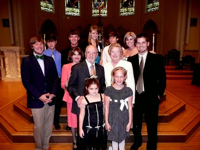 | With his dear wife, Kathleen and son, Joey (Mama is up front) at Brother Ron's Wedding Reception |